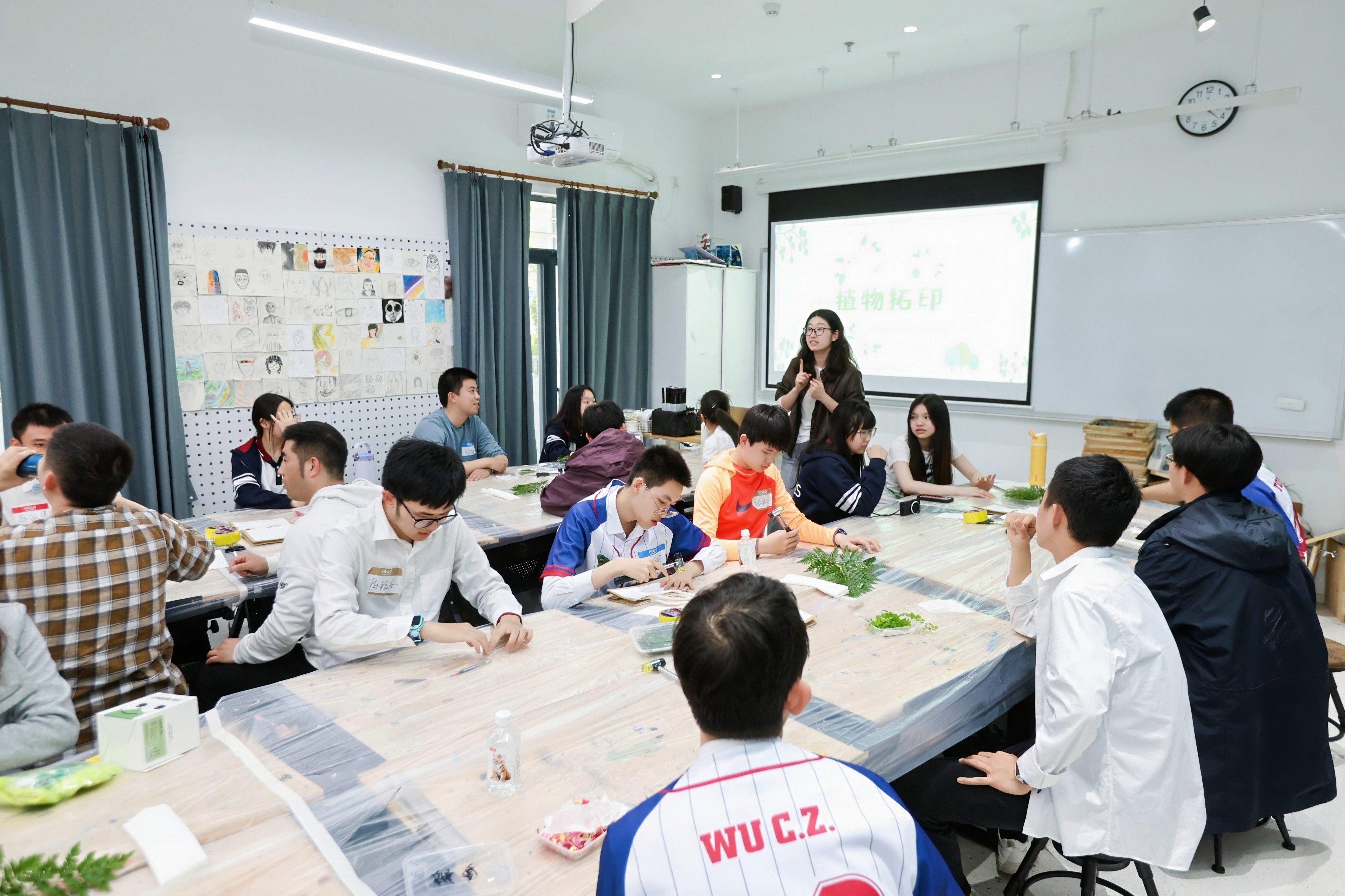 The final activity was botanical embossing. In the art room, volunteers and teachers demonstrated the process. After practicing on bookmarks, they moved to white canvas bags, using leaves and flower stencils to create permanent art. “They were incredibly skilled and focused,” Sally noted. “Seeing the joy on the faces of the children and their parents when they finished was the highlight of the day.”